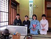同会は、気軽にお茶を楽しんでもらおうと季節ごとに年4回、呈茶席を開いている。男ならではのアイデアで趣向をこらし、それを楽しみに参加する人は多いが、丸井今井邸を見学に来て、ついでに参加する人も多い。今回は県外から見学に訪れた大学生も茶席に加わり、思わぬ茶のもてなしを喜んでいた。