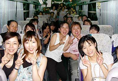コンクールの帰りのバスの車中で喜びにわく三条市吹奏楽団団員