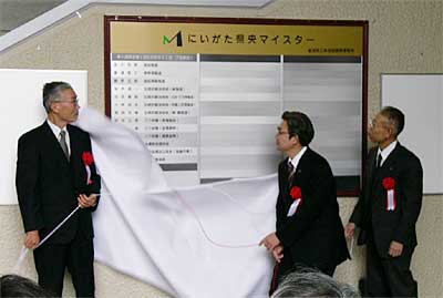 県央地域地場産業振興センターに設置したにいがた県央マイスターの顕彰表示板の除幕式 (2006.2.10)
