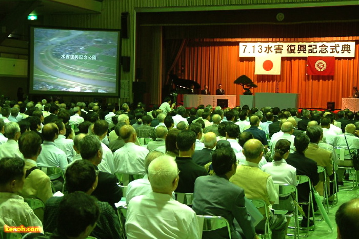 て7・13水害慰霊祭、復興へのあゆみ、映像上映
