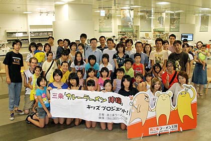 「燕三条ラーメン王国」(梨本次郎代表)による「三条『カレーラーメン体操』キッズプロジェクト!」のDVDが完成し、9日、JR燕三条駅の燕三条Wingでその完成試写会が開かれた。
