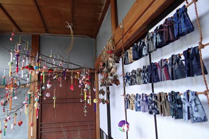 幸子さんは樹脂粘土の作品を習い始めてから15年、つるし雛は11年のキャリア。静岡でたびたび展示会を開いているが、今回は妹の洋子さんからの誘いで初めて三条での開催が実現した。連休前から少しずつ作品を送付し、27日に夫と車に作品を積みこんで三条へ。展示作業だけで2日がかりの大仕事だった。
