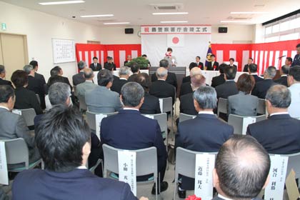 燕警察署庁舎竣工式が23日午前11時から同署で行われ、地元の関係団体などから50人余りが出席し、7日開庁した燕市の新庁舎に続いて11日、その東隣りに建設されて11日開署した新庁舎の竣工を祝った。