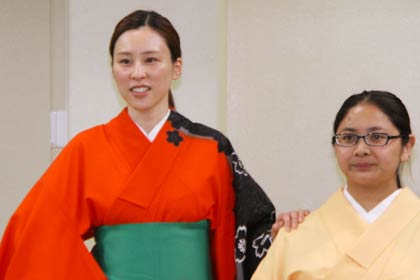 指導者は日本舞踊の花柳流・花柳寿之柳さん。「気持ちは表に表れます。わたしは選ばれたんだとか思わないように」と謙虚な姿勢で取り組むよう、くぎを刺してからけいこを始めた。