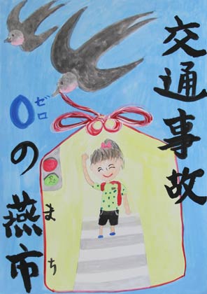 毎年、燕市内の小中学校の児童生徒から交通安全を呼びかけるポスターを募集して開いているコンクール。ことしの応募は、小学校は昨年より37.3%、83点も多く、中学校も昨年より