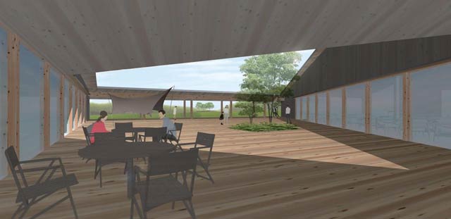 水源地域振興拠点施設は緑豊かな足尾山地のふもとに位置する。キャンプフィールドに加え、スノーピーク直営店(物販)や温浴施設、イベントにも利用できる開放的な多目的広場や中庭も備える。地元事業者の飲食店や食品加工所も併設し、地域の交流や観光を促進していくのが目的だ。