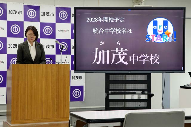 ただ、名称は同じでも今ある加茂中学校が統合中学校へ移行するわけではなく、新設する統合中学校の名称が加茂中学校となる。校名の決定に引き続き、新しい校歌や校章、制服、校舎の改修・整備など、開校に向けた準備を進めていく。