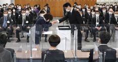 コロナ入社式で大桃社長も社長就任初仕事 (2022.4.1)