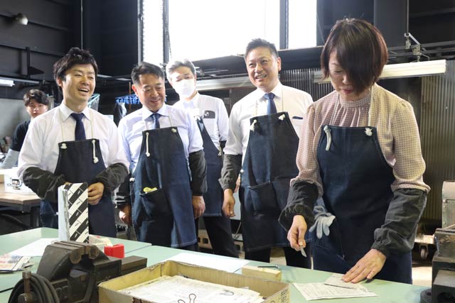 それぞれ自治体のトップとして行政を運営する立場から視察。ペーパーナイフ作り体験に熱中し、「まちやま」では運営形態や建物について質問し、角田高岡市長は施設の老朽化への対応に迫られており、スポーツ施設と文化施設を統合した三条市体育文化会館を見てみたいと話していた。