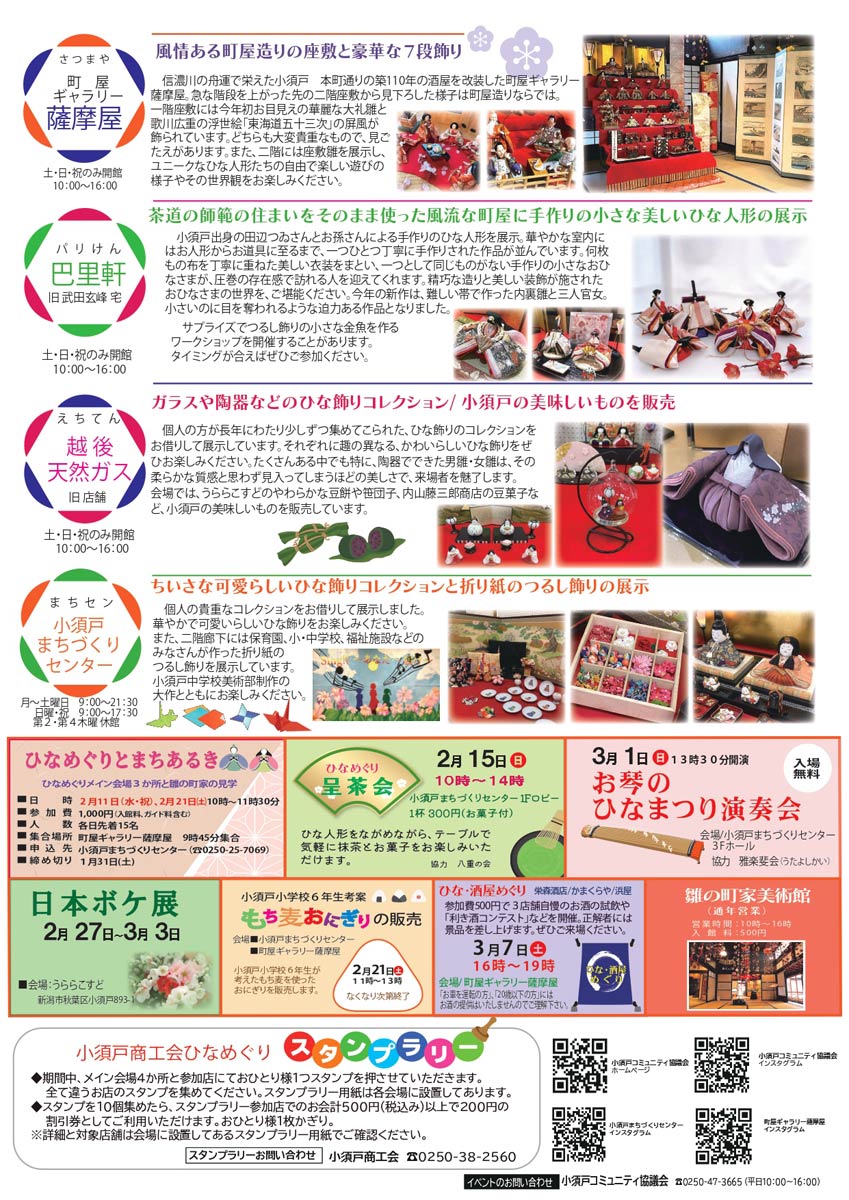 新潟県新潟市秋葉区の小須戸地域で、在郷町の風情を今に伝える小須戸の町並みを舞台にしたひな祭りイベント「在郷町小須戸ひな・町屋めぐり2026」が3月8日まで開かれている。